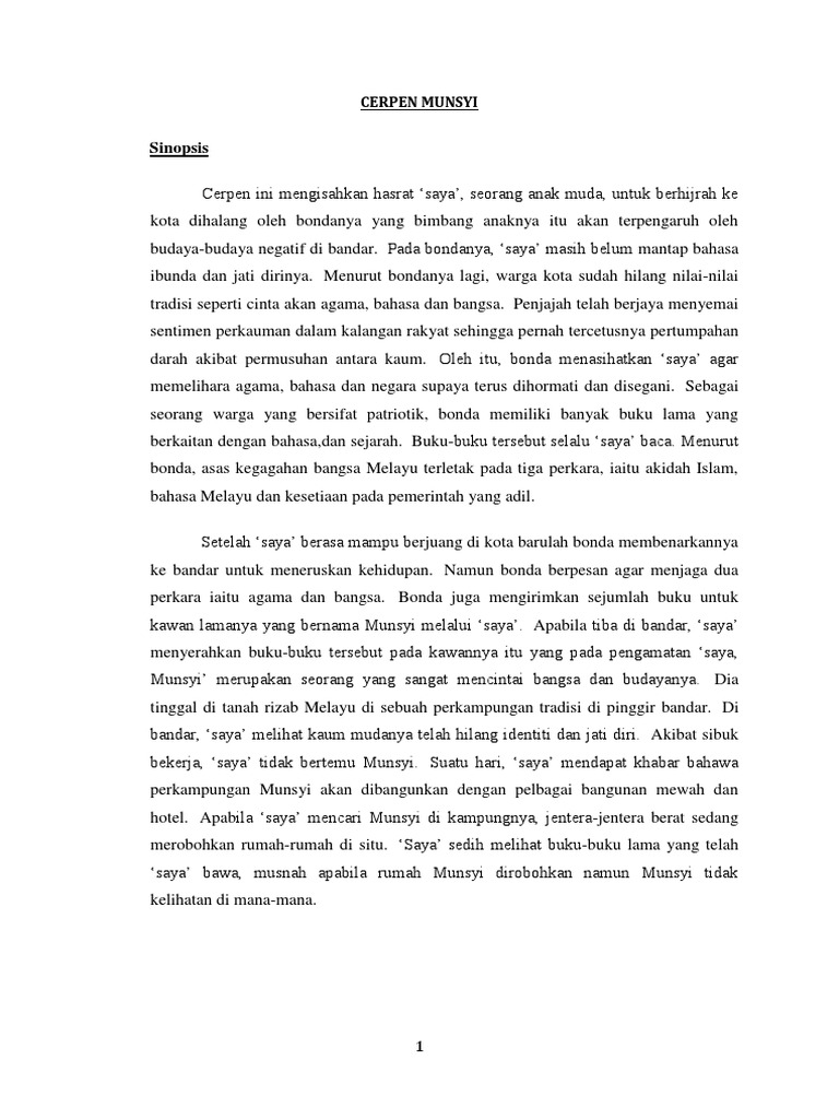 Cerpen Munsyi Sinopsis Persoalan Nilai Pengajaran from www.ipendidikan.my Sinopsis (komsas tingkatan 4) cerpen munsyi : Adalah pentin untuk anda menjadikan nota ini sebagai panduan anda untuk subjek ini. Video ini memberikan penerangan secara terperinci tentang cara memberikan jawapan yang tepat untuk menjawab soalan pemahaman petikan cerpen. P1 memperkukuh ilmu agama p2 penerapan semangat cinta akan negara / jati diri dalam mata pelajaran di sekolah p3 penggunaan bahasa kebangsaan dalam komunikasi rasmi dan harian p4 pengajaran tentang sejarah negara merentas kurikulum p5 kempen / program… Punca remaja terlibat dalam penyalahgunaan dadah. Pada bondanya, 'saya' masih belum mantap bahasa ibunda dan jati dirinya. Soalan cerpen munsyi komsas tingkatan 4. Terdapat dua nota yang kami kira amat.