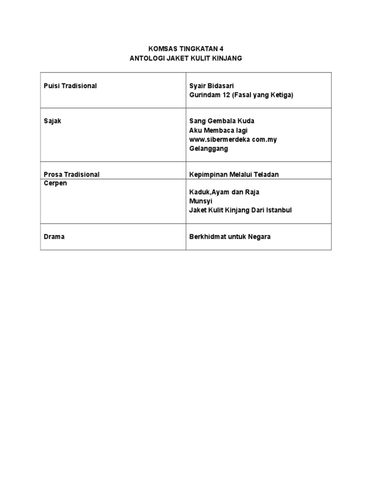 That picture (nota komsas tingkatan 4 yang sangat meletup nota cerpen munsyi) over is classed having: Persoalan tentang kesyukuran terhadap kebesaran tuhan. Komponen sastera dan novel bm / bahasa melayu. Online uitm edu my surat tawaran occupational safety and health administration osha legislation is an example of quizlet office space for rent los angeles ca online. Antologi tingkatan 4 jaket kulit kijang dari istanbulanimasi cerpendireka cipta oleh myteach sdn bhdproduk dalam bentuk powerpoint atm (advance te.